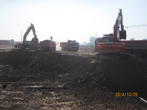 10月18日, 由我公司投资建设的上虞市高铁新城城市综合体项目道路工程(称山北路、康居路、康亭路下穿箱涵)BT工程两座下穿箱涵北侧基坑开挖。